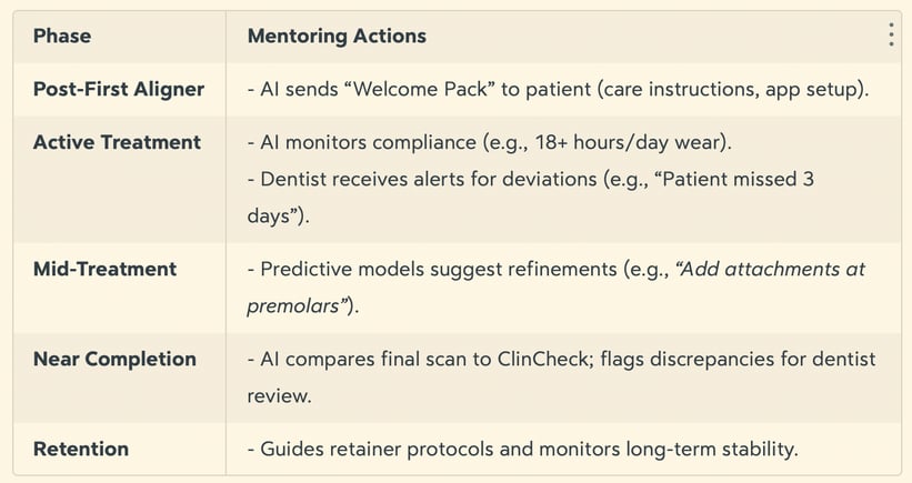 To combat non-compliance, AI systems can trigger automated reminders that prompt both the patient and their parents through a dedicated app. This proactive approach not only improves patient accountability but also reinforces engagement in the treatment process. Moreover, the dental practice can further support the patient by scheduling motivational video calls with the mentoring team, reinforcing the importance of adherence and offering encouragement.
